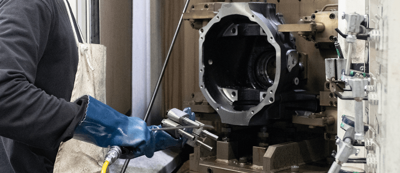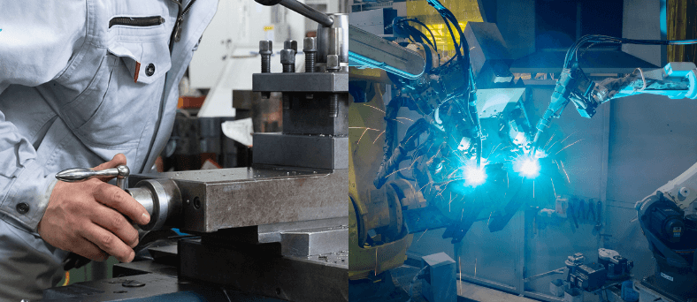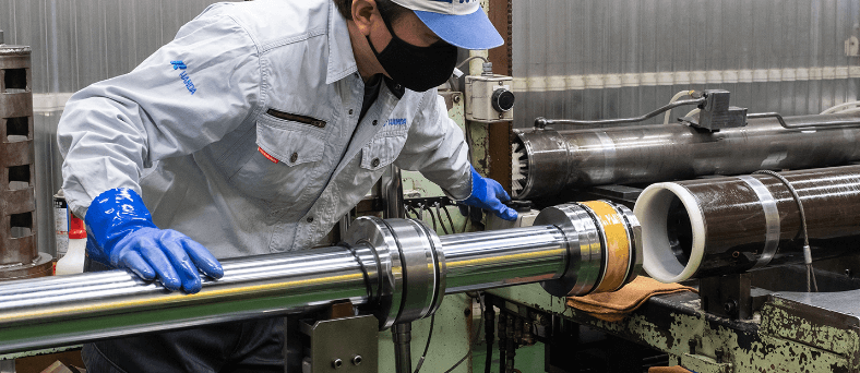 弊社のモノづくりは「シリンダー事業」「溶接接合事業」「複合加工事業」の3つの事業から成り立っており、主にフォークリフト用の部品や産業車両用の油圧シリンダーの製造を行っています。最新の自動化設備の導入にくわえて、職人を育成し熟練の技を融合させることにより、多品種少量品でも品質を確保しながら、タイムリーで安価なモノづくりを実現しています。