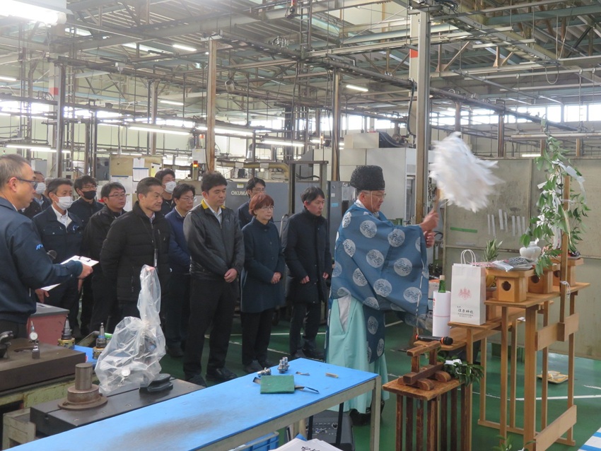 2026年1月30日に毎年恒例の安全祈願祭が201工場と301工場で行われました! 今年一年の『安全・無事故』を祈願して、地元「住吉神社」の宮司さんにご祈祷とお祓いをしていただきました。 弊社では社員全員が安全に意識を持ち、働きやすい職場を目指し、日々改善しております。 今後も、安全活動に力を入れて休業災害「ゼロ」を目指し、レベルアップをしていきます。