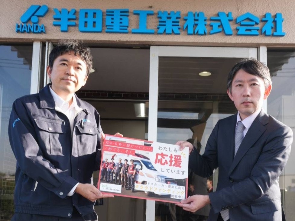 このたび弊社は、地域医療の充実と救急医療体制のさらなる強化に貢献することを目的に、知多半島総合医療機構が運用するドクターカー更新プロジェクトへ寄付を行いました。